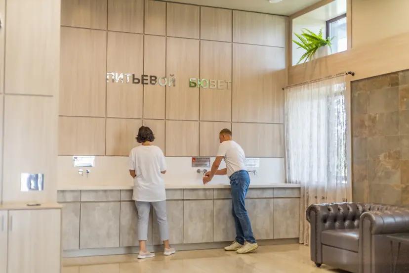 Для питьевого лечения вода подогревается до необходимой при каждом заболевании температуры и подается из разных кранов в питевом бювете.